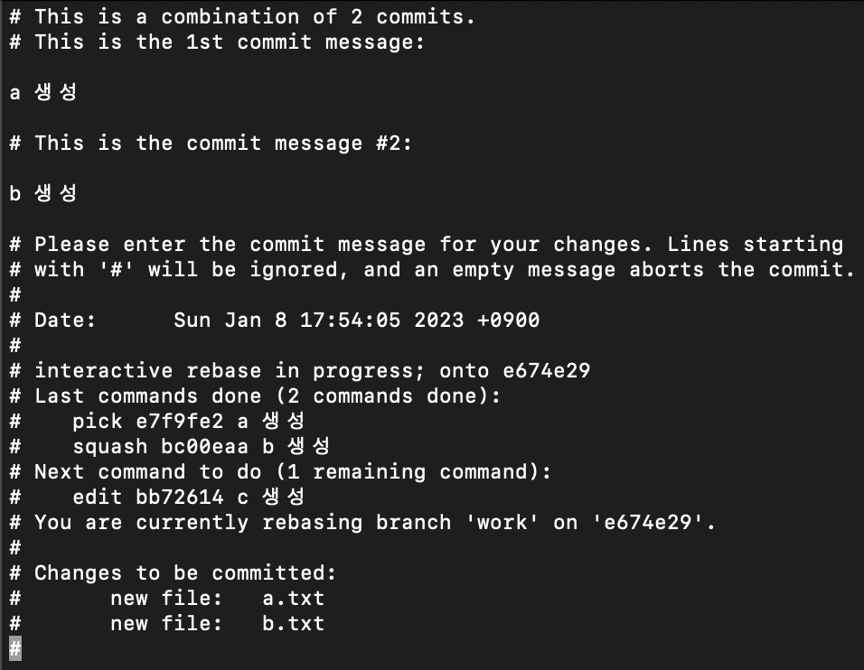 c커밋에는 edit 옵션을 주고 실행해주었다.(:wq! 엔터)